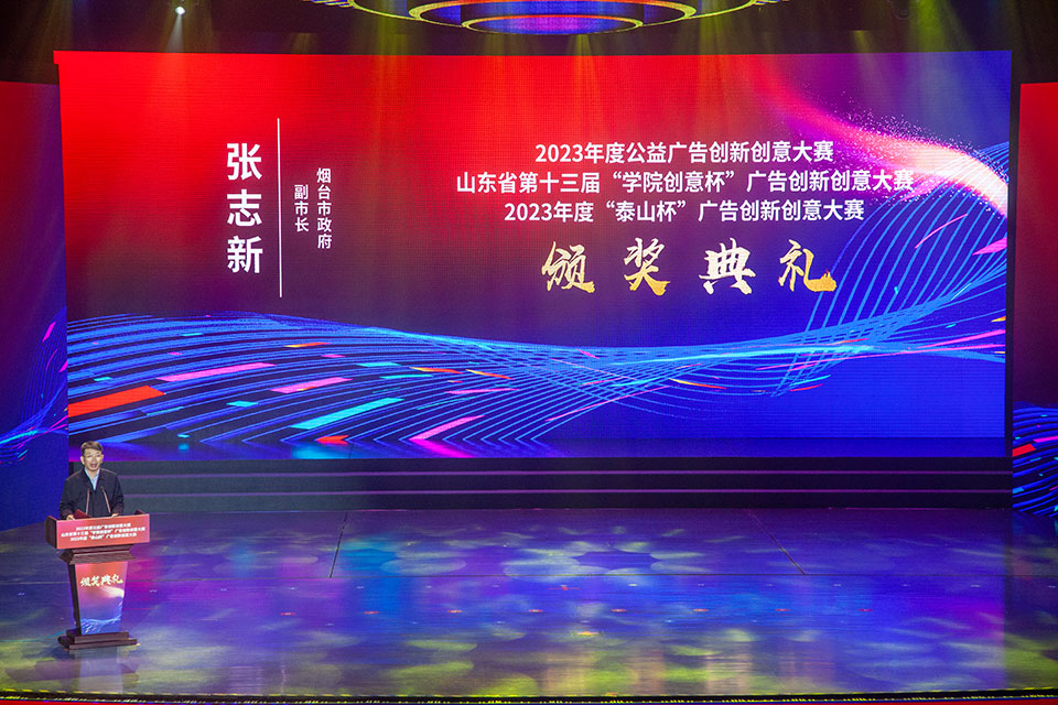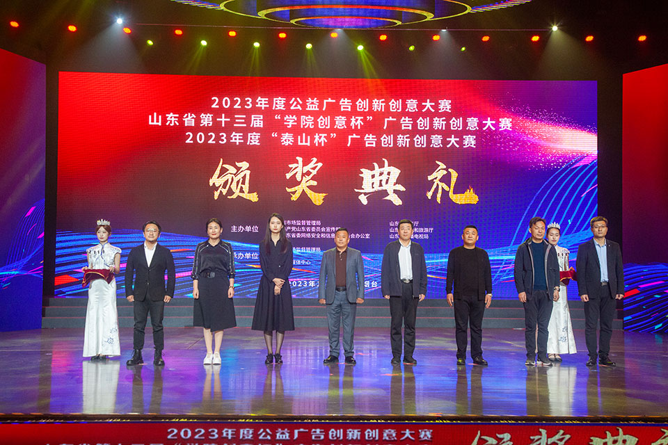 11月6日下午,2023年度山东省公益广告创新创意大赛暨第十三届“学院创意杯”和2023年度“泰山杯”广告创新创意大赛颁奖典礼在烟台市融媒演艺中心举办。