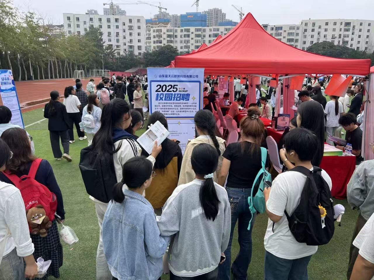 招聘会现场气氛热烈、秩序井然。各企业展位前聚集了大量积极咨询、踊跃投递简历的毕业生,展现出广大学子对广告及相关领域的浓厚兴趣与职业热情。据统计,参与本次招聘的龙口市鼎艺广告有限公司、烟台恒大文化发展有限公司、烟台稻草人信息技术有限公司、烟台肆肆伍捌文化传媒有限公司、烟台齐顺广告有限责任公司、山东蓝天云数据科技有限公司等企业共收到简历111份,初步达成就业意向40人,整体成效显著。