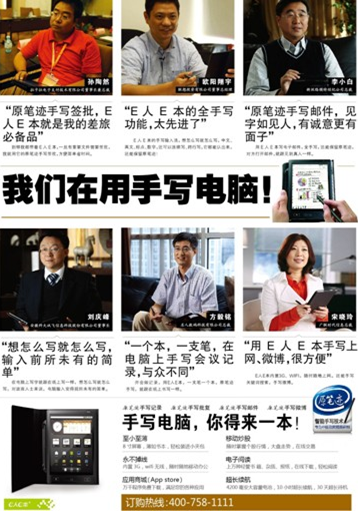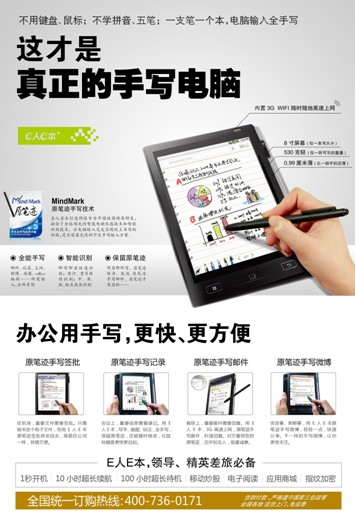 至此,E人E本的第一场战役已经宣告成功,初步占领“商务型手写电脑”这个根据地市场。