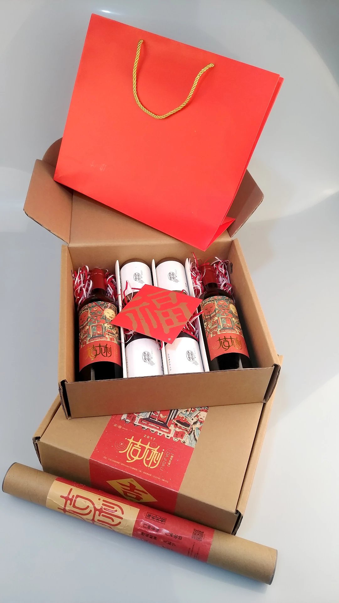 ①增福财神+门神秦琼敬德+福字+吉字九件套装 ②小种红茶+野红茶奢华套装 ③Noble Vin智利干红财神酒两瓶