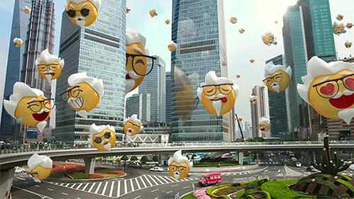 今年7月17日,肯德基携手emoji推出“K-emoji”系列表情图像,并首度亮相上海陆家嘴、徐家汇地标性建筑LED大屏,醒目而可爱的造型为现场观众带去惊喜连连,被网友戏称“爷爷表情”!同时,“尽情自在”的品牌新定位传递给了每一个人。