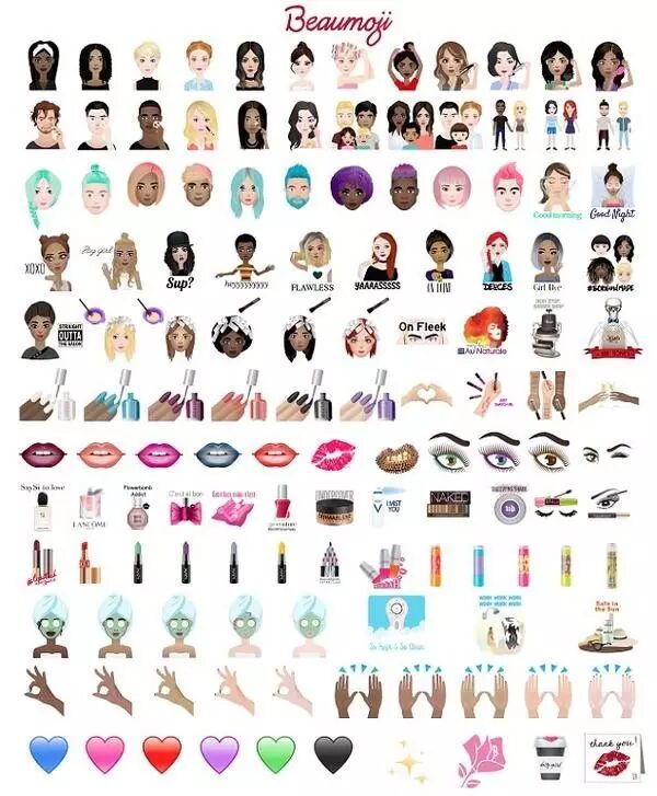 欧莱雅推出了一款名为“Beaumoji”的表情包,一共有 130 个美妆主题的表情,其中有52个与欧莱雅旗下的品牌相关。这些表情的系列之一叫做“IT Girl”,主要体现的是时下流行的美妆趋势,比如渐变色头发,choker 项圈,ombre 唇妆等。指甲和唇膏的颜色也终于不再只是像官方 emoji 那样只给出红色和粉色了。
